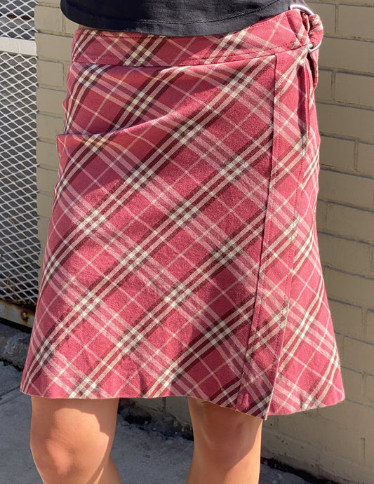 Courrèges Vtg Pink & Blue Plaid Wool Skirt