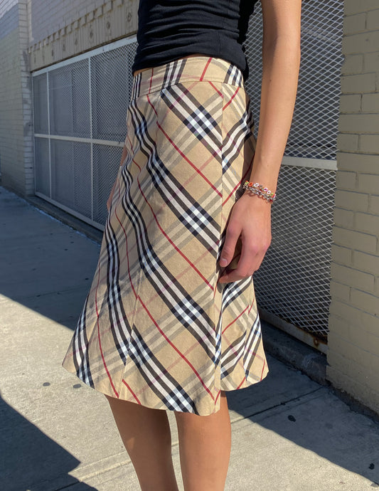Burberry London Blue Label Pink Check Pleated Mini Skirt