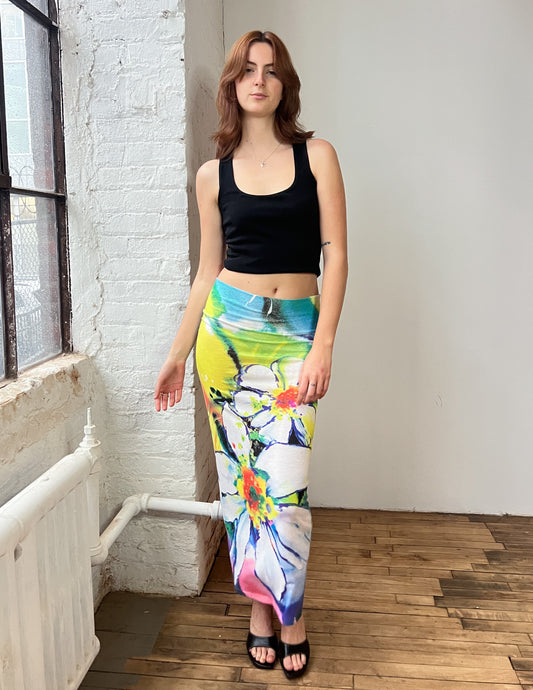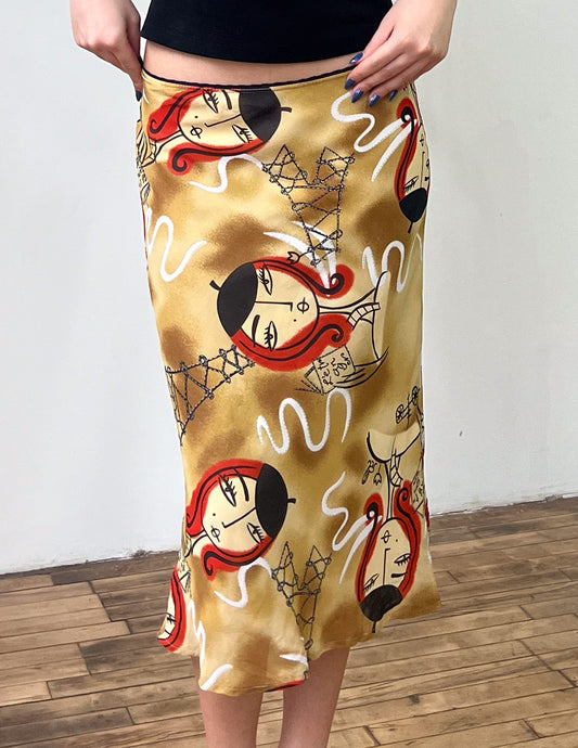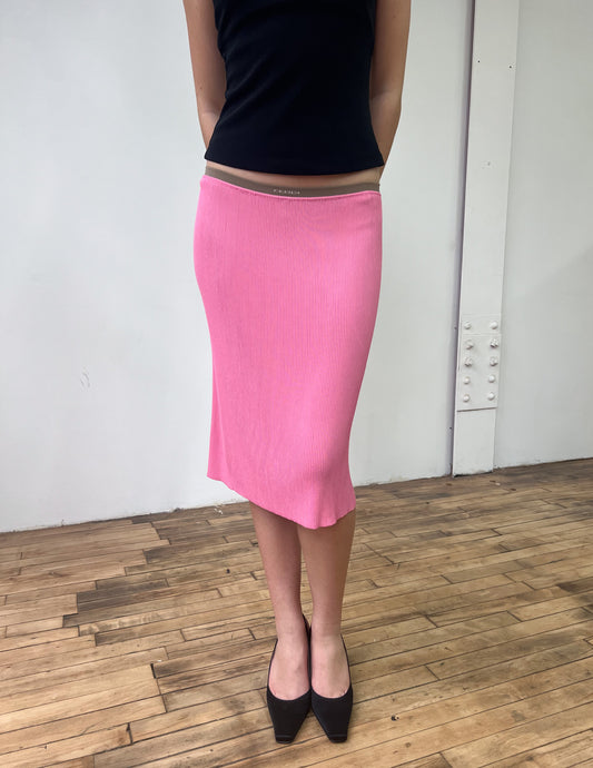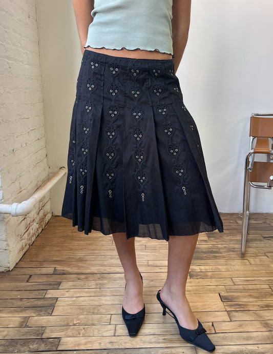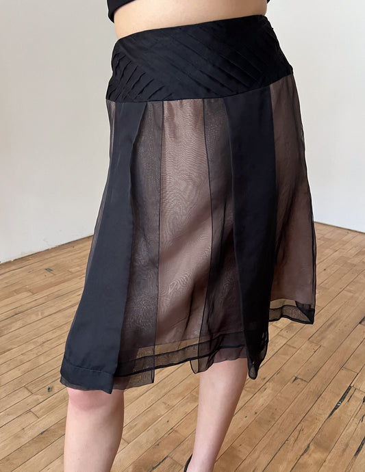 Celine 100% Silk Black & Nude Pink Overlay Skirt