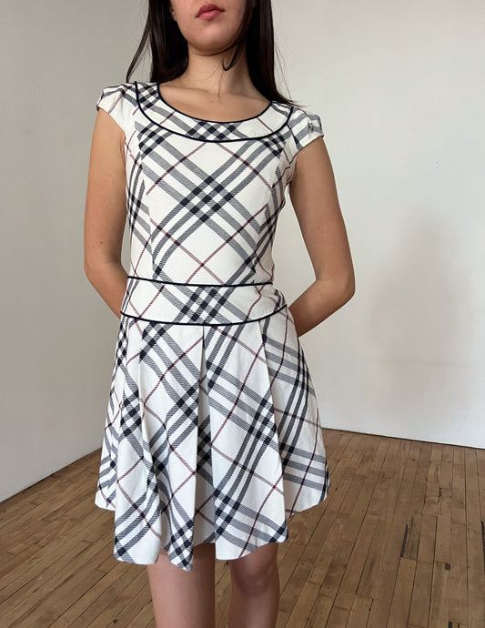 Burberry London Blue Label Pink Stripe Check Midi Dress
