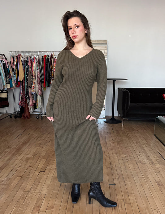 Christian Dior Blue Long Sleeve Knit Midi Dress