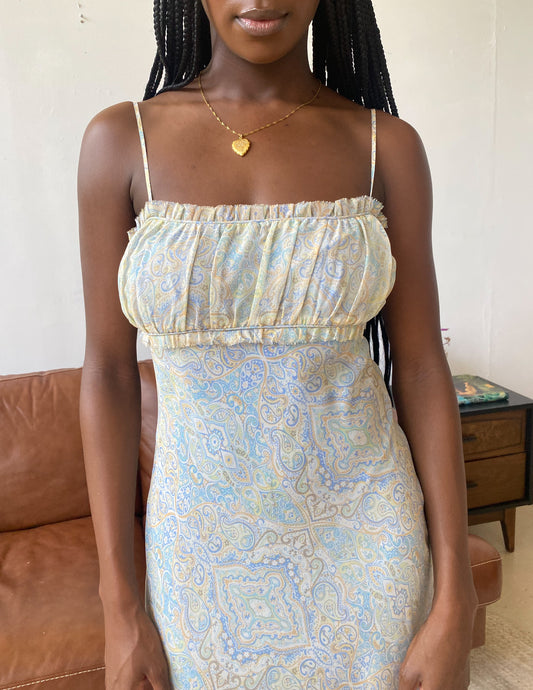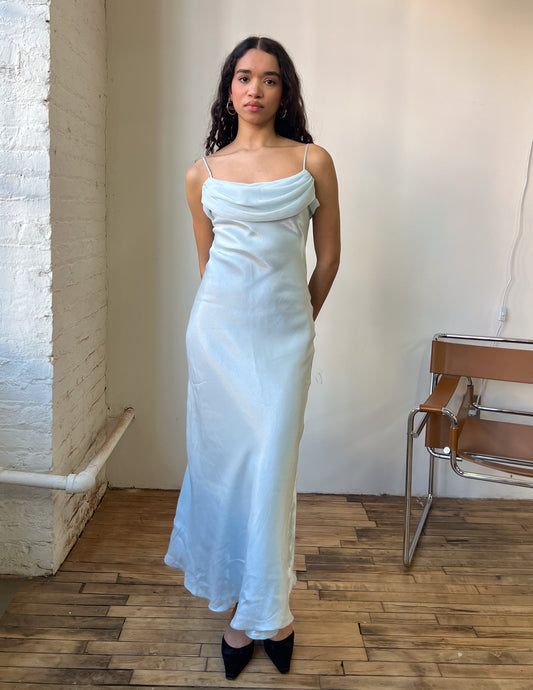 Sold outVtg Bias Cut Powder Blue Maxi Dress