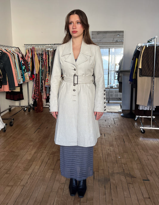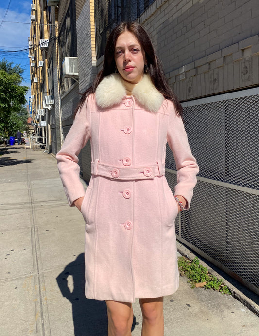 Courrèges Baby Pink Detachable Fox Fur Trim Coat