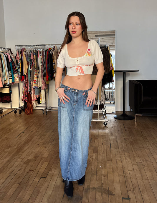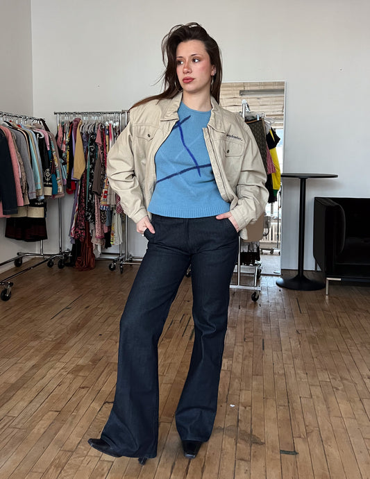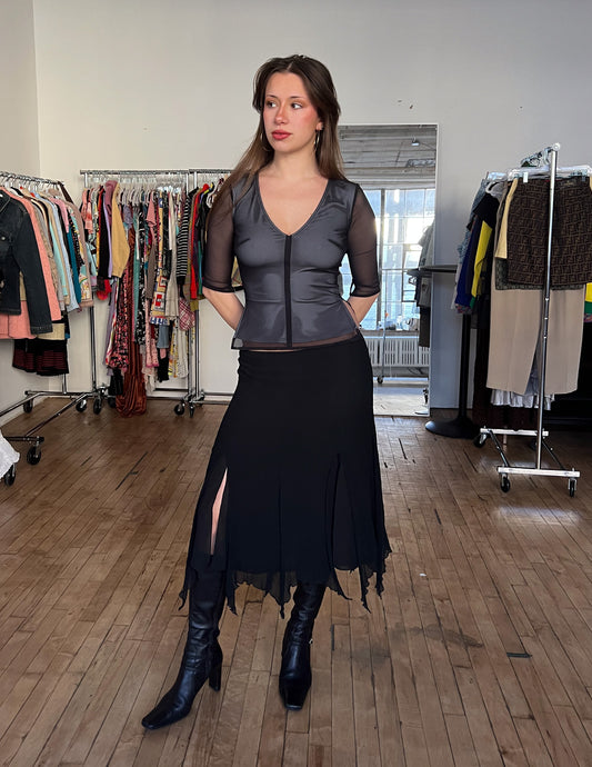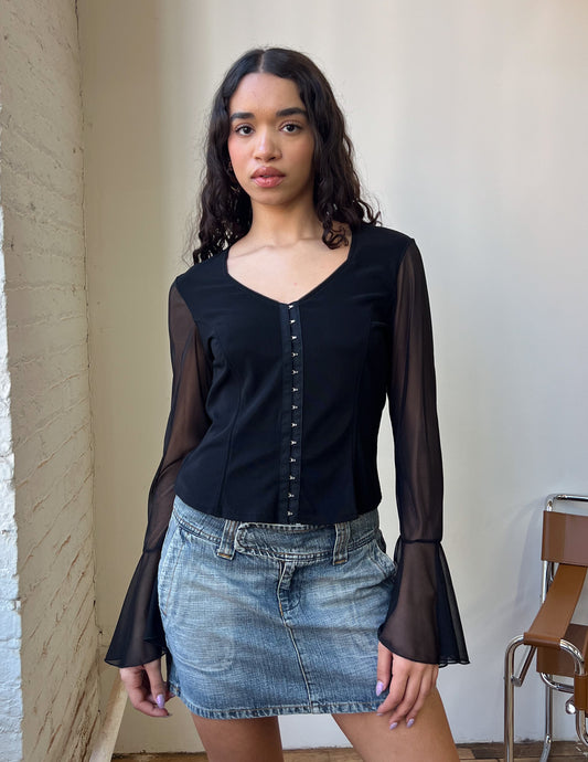 Vtg Mandee Hook & Eye Bell Sleeve Top