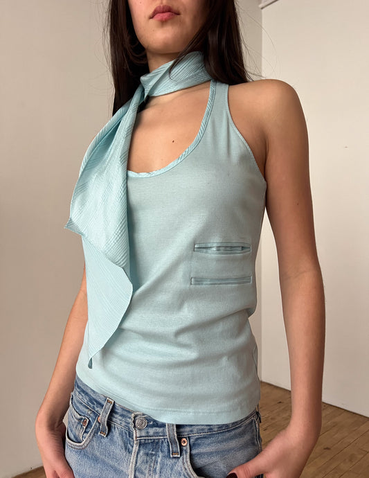 Sold outTeal Lace Trimmed Corset Detail Tank