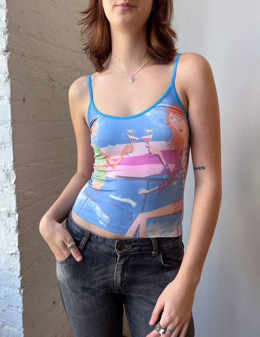 Sold outSemi Sheer Tank Beaded Flower Detail