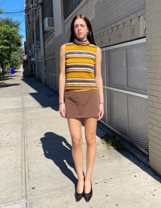 Courrèges Striped Rhinestone Detail Turtleneck Tank