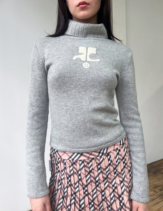 Courrèges Vintage Grey Wool Turtleneck Sweater