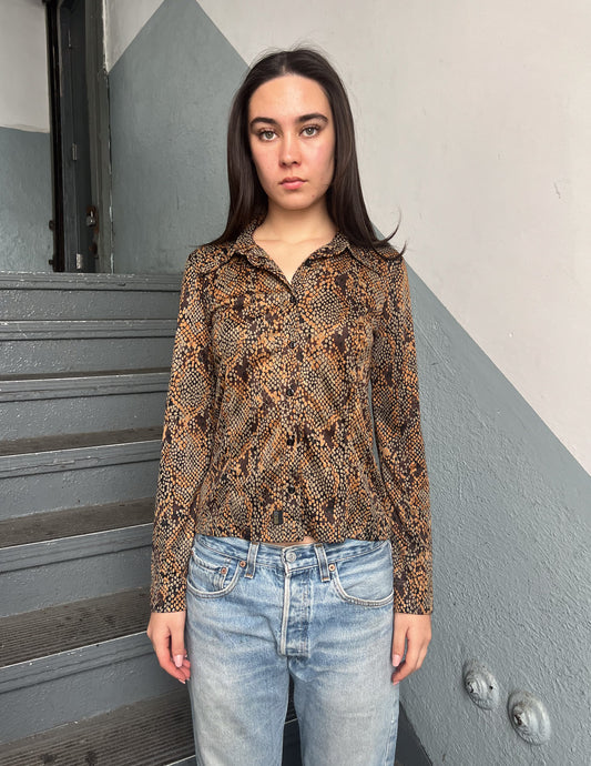 Just Cavalli Snakeskin Print Button Down Blouse