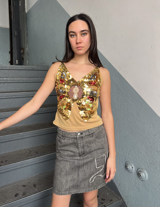 Vtg Butterfly Gold Sequin Tank