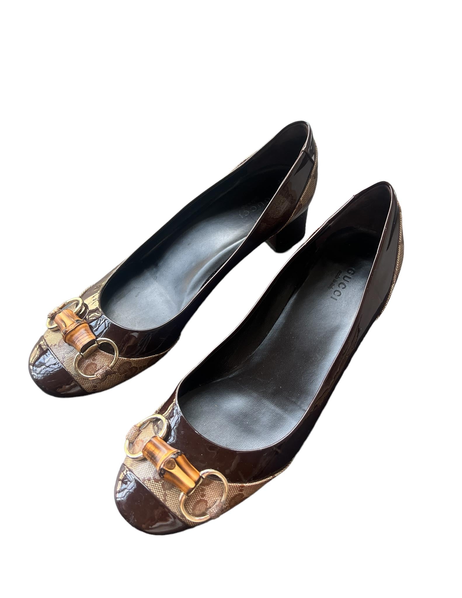 Gucci Patent Leather Bamboo Block Heels