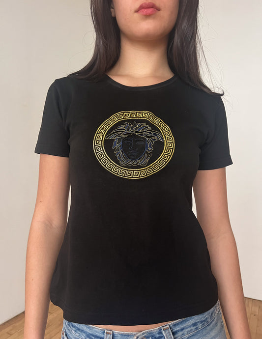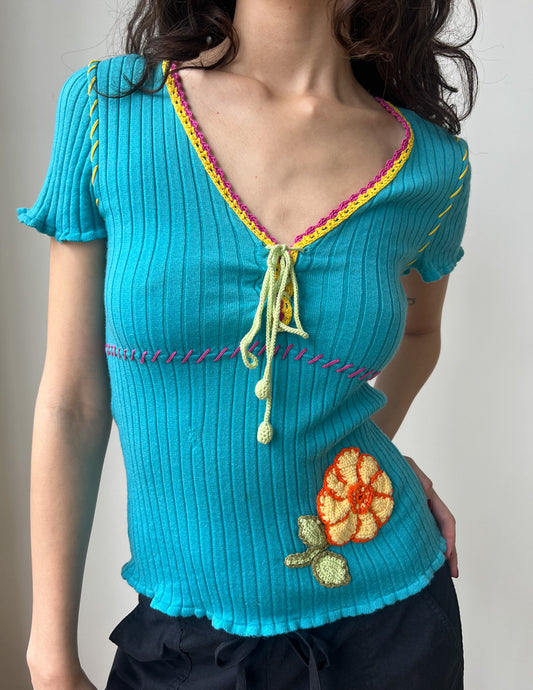 Vintage Floral Black Lace Trim Semi Sheer Baby Tee