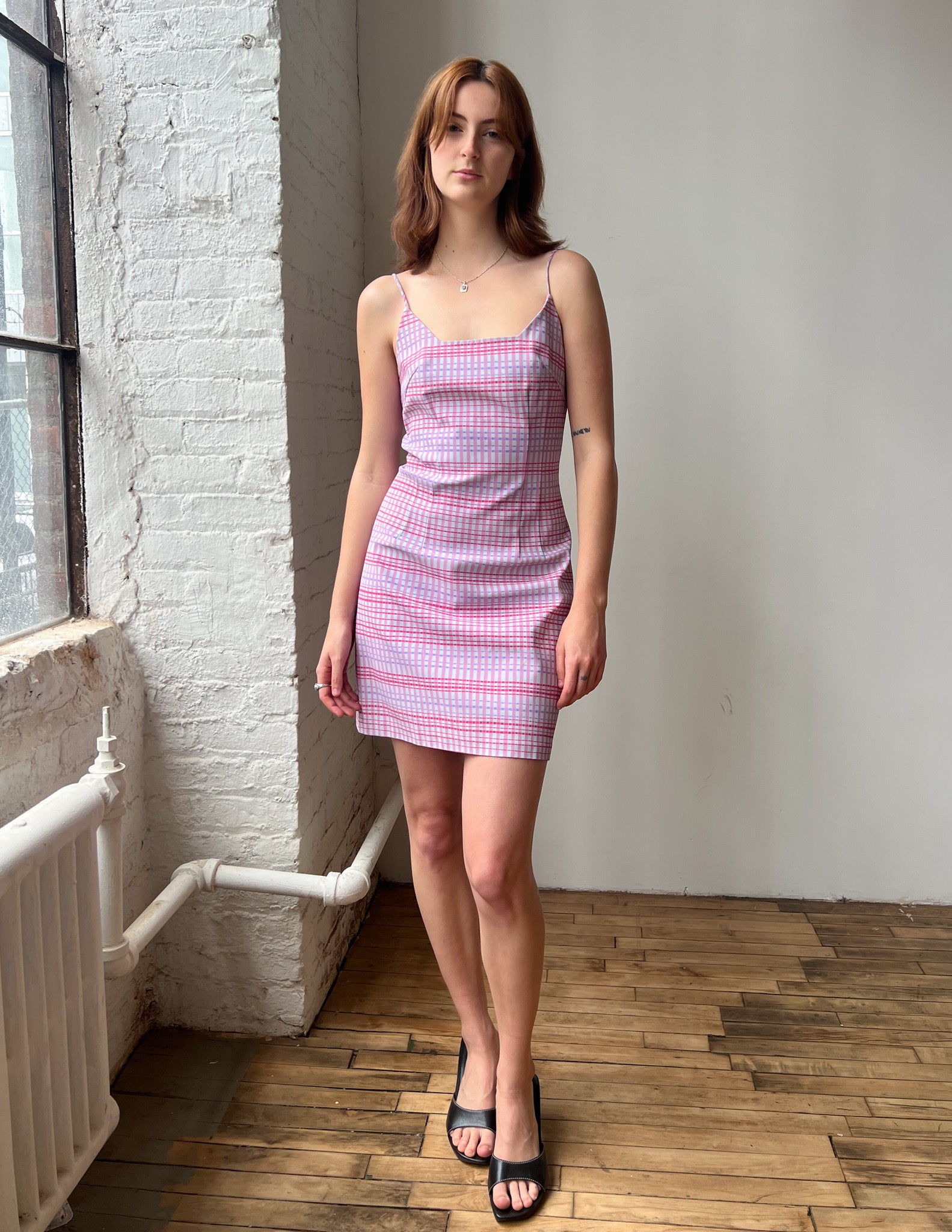 Lily is wearing a Vtg Maria Bianca Nero Plaid Midi Dress. This dress would be best fit for size S/M.