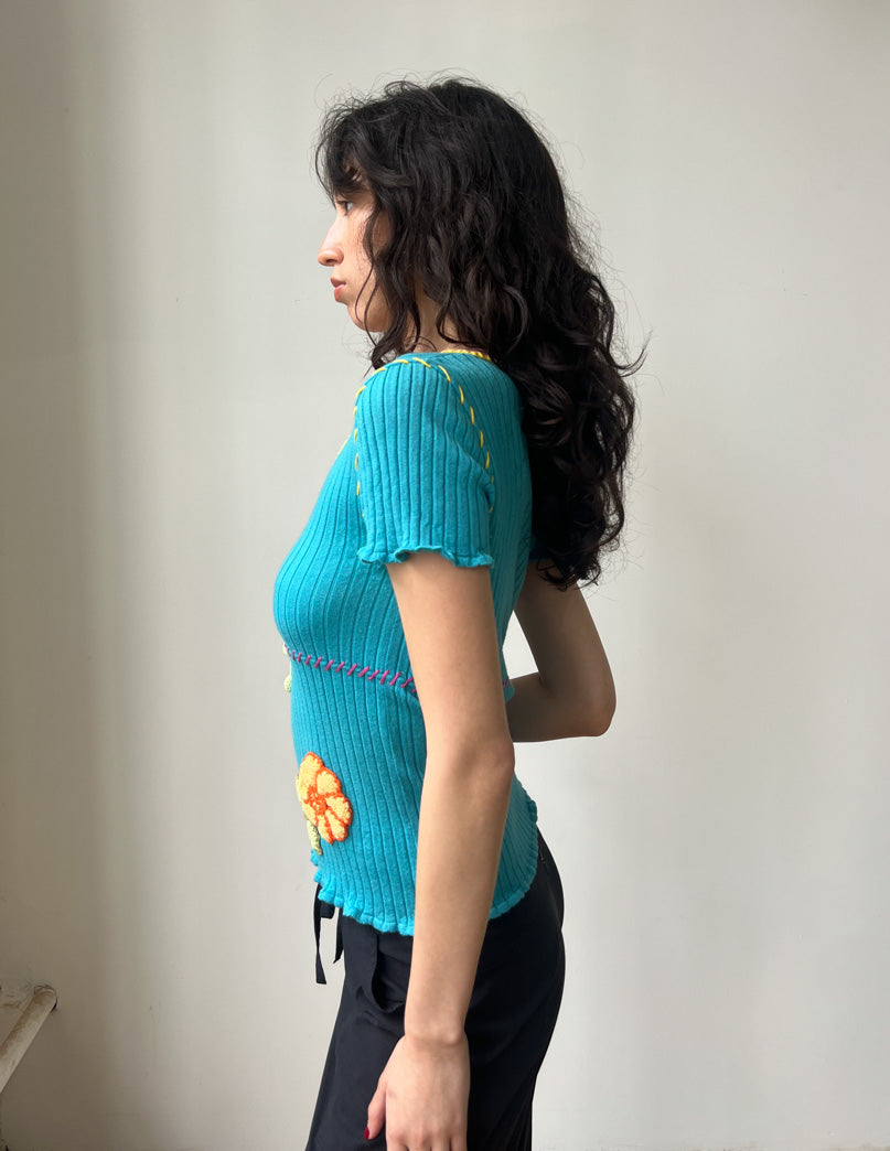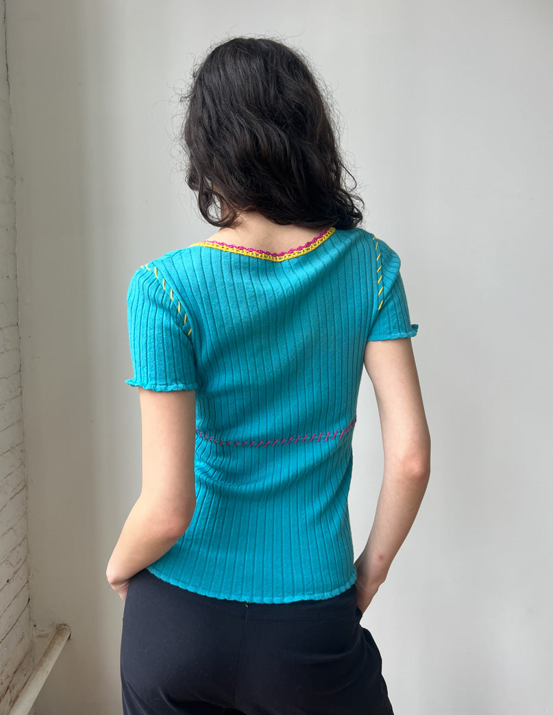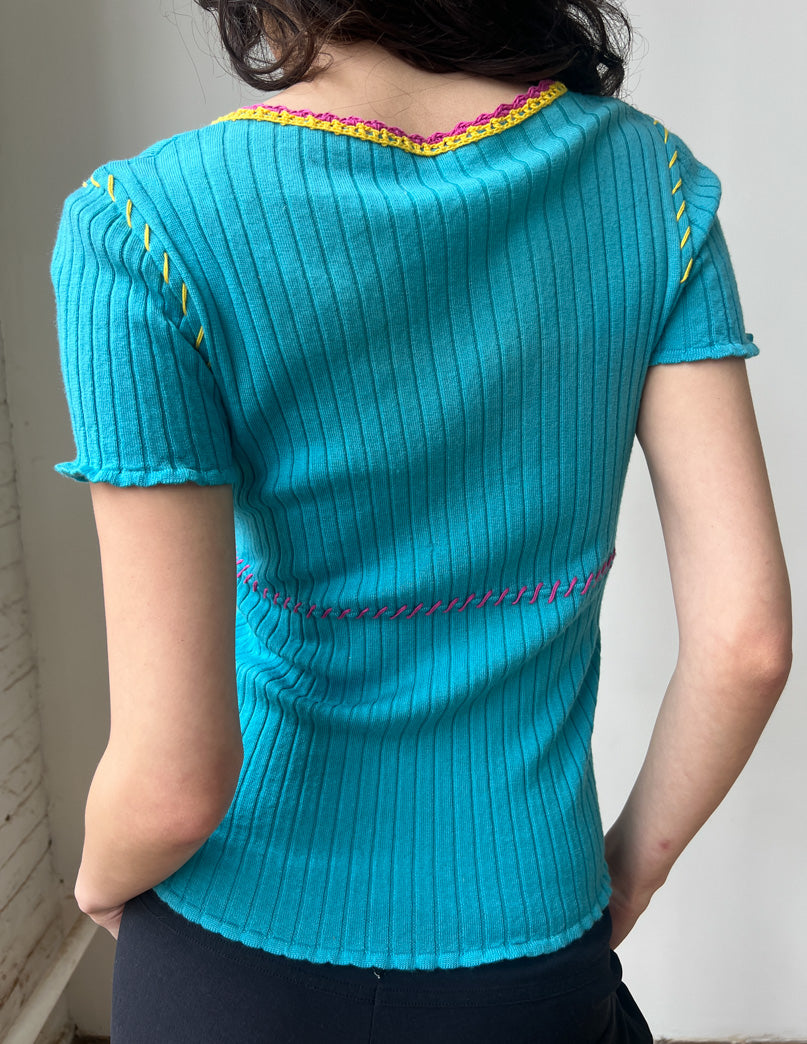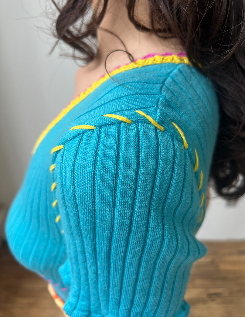 Lauren is wearing a Moschino Cheap & Chic Knit Top. This top would be best fit for size XS-L.