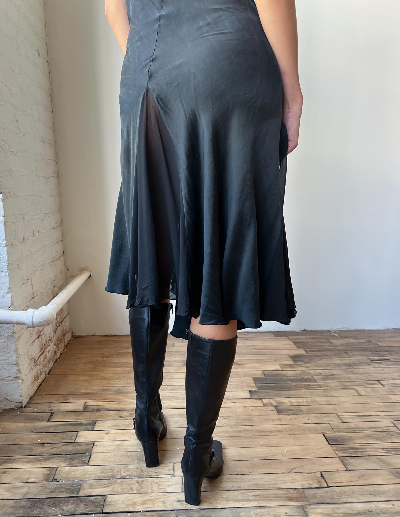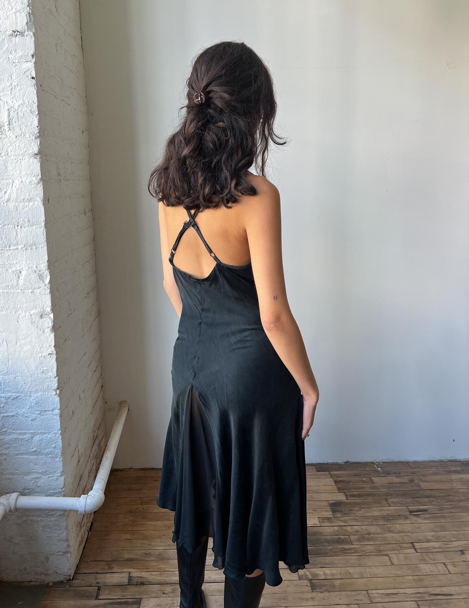 Lauren is wearing a vintage Intimissimi Silk Maxi Dress. This dress would be best fit for size M.